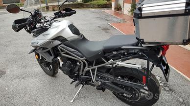 Vendo Tiger 800 XRX aprile 2017. Dotazione di serie: ABS, cruise control, frecce a ritorno automatico, presa 12V, sella comfort sia guidatore (anche regolabile in altezza) che passeggero, TCS, mappe motore, cavalletto centrale e laterale. La moto include tris valigie in alluminio originali Triumph (bauletto con base oscillante); gomme al 70%. Moto come nuova, mai incidentata, usata prevalentemente per mototurismo. Compreso nel prezzo anche navigatore TomTom Rider 400 con mappe ottimizzate per mototurismo (possibilità di scelta altimetria e tortuosità dei percorsi ) con bluetooth per collegamento con interfono. Batteria nuova.