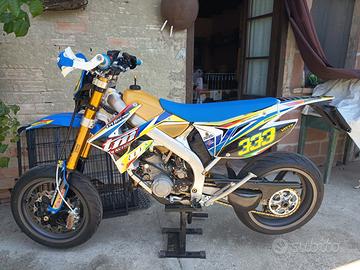 Vendo Tm smr con ciclistica completa. La moto presenta mono forcellone con cerchi il lega derivanti da Tm smm 125 con gomme al 90% Pirelli diablo III, ohllins complete (mono e forcelle), motore completamente revisionato e tagliandata regolarmente. La moto non presenta nessun tipo di problema elettrico o di motore. La moto è un orologio. Cedo svariati pezzi come scarico originale, plastiche, telaietto nuovo, impianto temperatura e pressione gomme con display a manubrio. PREZZO TRATTABILE DOPO VISIONE. Accetto scambi con moto di cilindrata superiore di mio gradimento motard NO PERDI TEMPO O AFFARISTI