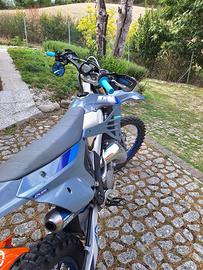 Vendo Tm en 125 con 4700 km 90 ore totali, il motore è stato rifatto; frizione nuova; cambio olio; sostituzione dei liquidi delle varie pompe; trasmissione completa nuova; catena nuova; gomme maxxis nuove sia al anteriore che al posteriore; pastiglie dei freni nuove. Tutti i lavori sono stati svolti in officina officiale TM con tutte le fatture. •Oltre alla moto cedo anche un altra pancia scalvini; nuova un altro kit di plastiche completo per il fuoristrada e tutti i componenti per riportare la moto originale Prezzo leggermente trattabile astenersi sognatori e perdi tempo