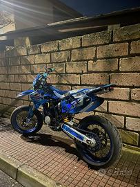 vendo tm 125 a carburatore. la moto é del 2005,a libretto ha sia l’omologazione motard che enduro con due possibilità di misura delle gomme per entrambi i modelli di gomma. Monta scarico completo hgs,38,collettore in alluminio, porta targa piegevole, forcelle kyb, mono ohlins ,frizione idraulica, grafiche personalizzate, pompa brembo 16x18,disco 305mm appena cambiato,gomme diablo rosso 2 cambiate questa estate, pastiglie nuove sia anteriori che posteriori, idem i cuscinetti dei cerchi, cerchi excel.La moto all’attivo ha circo 40 ore dal rifacimento del blocco:
