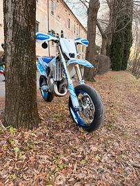 vendo a malincuore tm 125 fi 2024 (a libretto 2021) la moto ha 149.2 ore, motore rifatto completamente a 147 ore (dispongo di ricevuta) la moto ha cambio elettronico, rapporti 13-42 componenti in ergal wd racing, copri sella wd racing, grafiche 100% personalizzate, porta targa artom, monta pneumatici semislick stradali continental sm evo 2, faro anteriore con piatta 3dm motorworld. al acquisto cedo carene originali, sella originale, componenti originali e faro originale. per ulteriori informazioni contattatemi