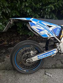 Vendo Tm 125 2t in ottime condizioni. DETTAGLI: Ho montato una testa ribassata per migliorare la risposta ai bassi. La gomma posteriore è nuova, mentre quella anteriore è al 70% di usura, entrambe Michelin, quindi il top di gamma. Catena, corona e pignone sono stati sostituiti a inizio estate. Scarico Scalvini (con originale incluso). Il pistone ha solo 40 ore di utilizzo e il blocco 220 ore (il contatore segna circa 229 a causa delle vibrazioni). Dopo questo pistone, la biella sarebbe da sostituire, ma è in ottime condizioni e può ancora reggere un'altra vita di pistone (vista pistone da 100 a 130 ore con buon utilizzo). Ciclistica perfetta: forcelle anteriori revisionate l'anno scorso e mono Hölins posteriore regolabile, la miglior sospensione disponibile. Freni anteriori Brembo con pompa e pinza radiale a 4 pistoncini, disco Brembo da 320mm con sistema flottante a T (impianto frenante da 1000?). PLUS: Incluso un kit di plastiche originali senza grafiche, tanti pezzi vari, tra cui un kit revisione carburatore mai utilizzato e altri accessori. Le grafiche personalizzate con il mio nome e cognome sono rimovibili, ma ho un ottimo contatto per farne di nuove a prezzo onesto. DIFETTI: La moto ha subito solo due piccole cadute su strada ghiacciata più di un anno fa, con un solo piccolo segno sulla grafica del codino, praticamente impercettibile. Impianto elettrico leggermente da revisionare (freccie, clacson e batteria scarica) Il prezzo é di 5.5k di partenza ma leggermente trattabile e per maggiori informazioni o per fissare un appuntamento, contattatemi! X RICERCA: #aerox #tm #125 #2t #cr #fantic #yz #ktm #sherco #husqvarna #moto #125cc