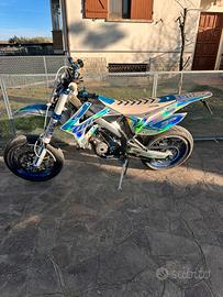 La moto monta Tappo freno anteriore in ergal Lava freno ant e feizione in ergal Tamponi ruota ant e post in ergal Tappo serbatoio in ergal Manubrio in ergal Copri serbatio completo in carbonio Piastre in ergal L30 della geko Pedane in ergal Piedino freno in ergal Tappo lato accensione in ergal Tappo rabbocco olio frizione in ergal Para schizzi in carbonio Para motore in carbonio Copri carter frizione in ergal Sella personalizzata wop desing Para piedini forcelle in 3D Porta targa gtlab Para pignione in ergal Frecce nano led Pancia dbr in titanio Terminale 1744 Para telaio in carbonio Sensore temperatura koso Para disco posteriore in ergal In piu cedo adesivi cerchi cromo Alla moto è stato cambiato il cilindro e testa dal vecchio propietario , io a gennaio ho cambiato albero, pistone, cuscinetti di banco, accensione, pompa benzina e pulizia iniettori, in oltre è stata rimappata da tm ufficiale. La moto è praticamente nuova non gli manca niente trattata da vero appassionato, Con un ottimo prezzo visto il notevole costo di tutti i pezzi che monta da oltre 4000€ Non esitate a acrivere per qualsiasi domanda.