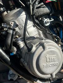 MOTORE rifatto completamente, con appena 20 ore, con disponibilita di ricevuta. Insieme alla moto vendo anche plastiche azzurre originali tm racing, telaietto originale color nero, cassa filtro originale (tutt’ora monta quell in carbonio fatta su misura cosi come il serbatoio, anch’esso disponibile quello originale), pancia HGS, in foto monta terminale originale ma compreso nel prezzo c’e anche il costo di terminale HGS shorty azzurro (foto disponibili se interessati) presente anche mono ohlins. Con la moto cedo amche cerchi cross e amche 3 paia di pneumatici semi-nuovi usati 2/3 volte l’uno. La moto é appena stata revisionata (impianto elettrico con chiave e batteria, tutto funzionante) e trattata sempe con la giusta cura e manutenzione.