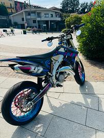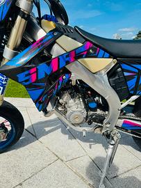 La moto è completamente originale, MAI avuto un problema meccanico, pistone cambiato a 70h e 140h e Biella cambiata a 140h con limatura del cilindro, moto con 7700km. Qualsiasi operazione meccanica è stata fatta sempre in concessionaria ufficiale tm (fatture annesse). La moto monta un porta targa pieghevole WM racing, plastiche nere e kit grafiche 100% personalizzate Cecchi design. Vendo con la moto anche le parti originali (frecce originali, porta targa originale, pedaline passeggero e specchietti originali)