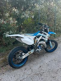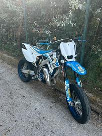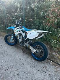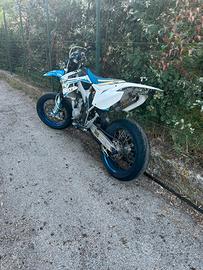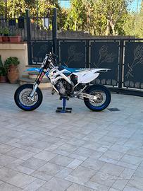 La moto presenta, piatta mx, con faro a led, portatarga pieghevole gtlab, terminale pro circuit, grafiche e copri sella personalizzate, molte powerparts in ergal (leve, registri, tamponi, pedaline, carter frizione, ecc.) e dettagli in carbonio( come, cover serbatoio, protezioni laterali del telaio, para schizzi posteriore, ecc.)È perfetta, e Pronta all'uso, cedo anche alcuni pezzi originali. vendo per passaggio a cilindrata superiore.