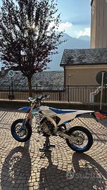 Vendo Tm 300 fi del 2023 perfetta,nessun problema con 30h totali mai usata pista mai caduta o appoggiata tagliandata regolarmente,mantenuta da amatore con manutenzione regolare monta pancia e terminale hgs anodizzato blu,quickshifter con 6 marce accensione elettrica e pedivella,elettricamente perfetta e con mappa tm racing 2025