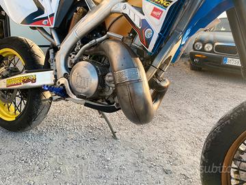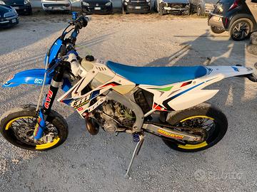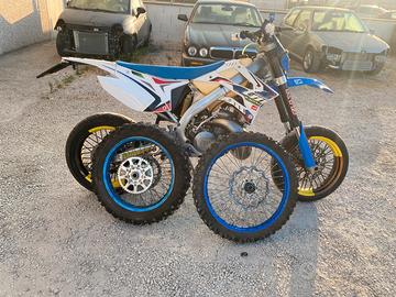 TM 300 en 2t , moto in perfette condizioni usata a livello amatoriale con doppia omologazione. vendo con doppio treno cerchi/gomme completi di dischi e corona gomme seminuove stradali al 90% da enduro 80% ,pacco lamellare ,scarico completo pro circuit