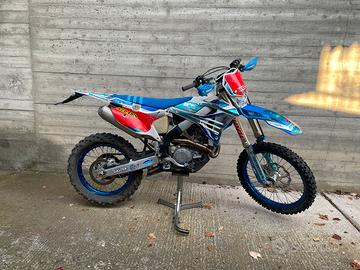 TM EN 300fi 4 tempi modello 2023 con 152 ore (6000 km) perfettamente funzionante, motore completamente rifatto da 30 ore (pistone biella albero cuscinetti), collettori di scarico Zard-Boano, disco freno posteriore maggiorato, copri sella, pedane, paramotore, corona e protezioni carter factory. A disposizione inoltre: scarico originale e scarico depotenziato, pedane originali, kit grafiche nuove, kit plastiche usate, 3 filtri aria extra (di cui 2 funnelweb), disco posteriore originale, corona originale e paramotore di serie corto.
