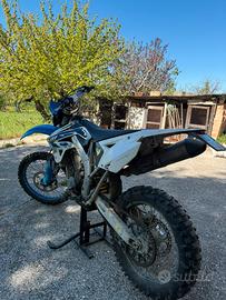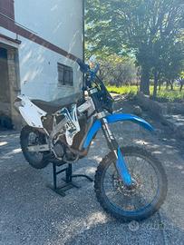 Vendo come da titolo tm racing 450 enduro, ultimo modello a carburatore, usato da amtore per uscite con amici e per sfogo pomeridiano. Vendo per inutilizzo causa famiglia, la moto è perfettamente funzionate. Sono 2/3 anni che non ci esco ma l’accendo regolarmente ogni tanto. Ho rifatto tutti i cuscinetti al banco, guarnizioni e taratura valvole. Sostizione corona è praticamente nuova. Monta scarico leovince x3 Gomma anteriore semi-nuova, la posteriore da sostitutire. Disponibile a prova