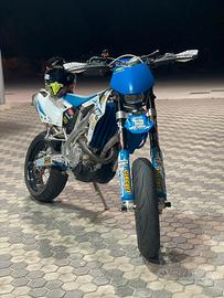 Vendo Tm450fi preparato smx 2017 Blocco Smx 5 marce impianto frenante radiale brembo 16x18 con pinza brembo M50 Blocco 180H Pistone 100H Gomme mitas sportforce + e trasmissione con 3 mesi di utilizzo Mai pista sempre tagliandata ogni 10h Moto omologata per 2 persone Vendo per passaggio a cilindrata superiore Valuto scambi con Naked 750/800/900 per patente A2 Prezzo poco trattabile dato l’eccellete stato della moto