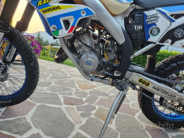 Le gomme sono state appena cambiate e sono praticamente nuove, la moto ha doppia omologazione quindi può montare anche cerchi e gomme Motard per circolare su strada.