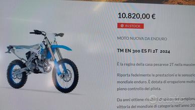 Tm EN 300 es fi 2 tempi anno 2019 km 1495 35 ore, pari al nuovo, gomme nuove , appena tagliandata e revionata, cronologia tagliandi 6700 euro. Garanzia + 300 euro copertura totale manodopera compresa .Davidetrovamoto Ossona Milano riceve su appuntamento anche dopo cena, possibilità permuta e finanziamento