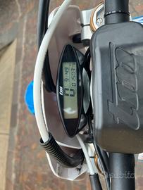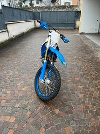 Vendo Tm en 300 fi 4t 2022 , unico proprietario, no gare uso amatoriale, 150 hr . Forcelle e mono ammortizzatore appena revisionati , pignone catena e corona nuovi, cuscinetti e parapolvere ruota ant e post da poco sostituiti . Qualche graffio su pastiche come da foto