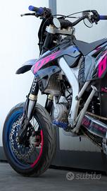 Vendo TM En 125 del 2014 Omologato Motard a libretto! Sono stati eseguiti vari lavori tra cui: -Cerchi Motard Excel -Forcelle e Mono tarate motard Giugno 2025 presso officina specializzata KYB dimostrabile con fattura -Cilindro ricromato accoppiato con pistone sezione A dimostrabile con fattura (con all’attivo 10h di utilizzo). Biella e Albero 150h, sono stati controllati quando é stato eseguito il lavoro e risultano perfetti. -Scarico completo HGS - pancia e terminale con lana appena rifatta. -Kit Catena-Corona-Pignone con Corona in ergal PBR Blu e Catena DID (con all’attivo 10h di utilizzo). -Disco 320 personalizzato EG-Brakes con mozzo in ergal Blu, con spostapinza motomaster by Vm racing e Pinza Assiale Brembo con Pastiglie al 65%. -Gomma Posteriore Nuova e Gomma Ant al 70%. Varie chicche estetiche tra cui pedane in ergal blu, pedalina cambio Alba motor parts manopole blu Kit Grafiche 100% personalizzate da Mi Race Graphics, Portatarga Gt-Lab, Cerchi bicolor, Sella rifoderata da Wd Racing con logo Tm racing ecc. Moto sempre tagliandata ogni 20h con olio Cambio Bardahl 10w40 come da manuale casa madre e tenuta maniacalmente da vero appassionato sempre in box su cavalletto alzamoto. No sognatori o perditempo. Disponibile a farla vedere ecc con anche tutti i pezzi vecchi cambiati. PREZZO TRATTABILE