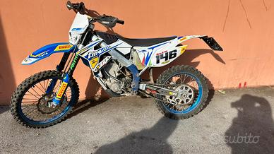 Gomme in ottime condizioni trasmissione perfetta leva cambio e corona di ricambio in più do anche la mascherina da Cross. Ore totali della moto 10. È stato fatta la manutenzione e cambio biella e pistone dall'ex proprietario, che conservo ancora perché in ottime condizioni. Qualsiasi prova, accensione solo con pedivella. La moto non è immatricolata. Vendo per passaggio a motard racing (450), infatti potrei scambiarla con uno pari condizioni. Scambio solo con motard racing, targate o non (450 racing)
