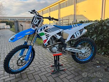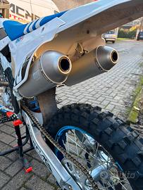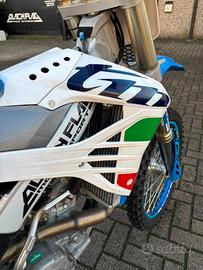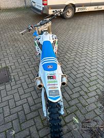 Monta doppio scarico twin tm, varie tappi leve in ergal nr team, copri sella per un maggiore grip, kit di grafiche personalizzato, kit airbox maggiorato.
