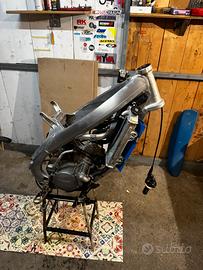 La moto si presenta con 75 ore totali,utilizzo esclusivamente in pista. Rifatti da 10 ore: pistone (fatto a 35h) lucidatura cilindro cuscinetti di sterzo cuscinetti del leveraggio pignone, catena e corono hanno 15 ore. La moto presente un forettino sulla sella del diametro di 1,5 cm circa.