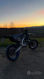 vendo tm racing smr 125 fi del 2024 : la moto da quando è stata presa è stata rifatta completamente l estetica ed è omologata per 2 persone di estetica monta: coprisella personalizzato wd racing blu e nero coperchio pompa frizione sm project coperchio pompa freno posteriore sm project coperchio blu freno anteriore copriraggi viola adesivi cerchi viola adesivi kyb personalizzati coperchio corpo farfallato personalizzato soat 3D parapignone personalizzato soat 3D carene nere lucide piatta nera con la griglia dei tm enduro paramani circuit neri puntale freno posteriore ergal blu tm racing pedane in ergal viola rl racing leva del cambio scar nera paracolpi personalizzato tappo serbatoio in ergal blu portatarga gt lab specchietti da manubrio freccie a led nano parasteli in carbonio cmt compositi copri serbatoio in carbonio completo cmt compositi griglia radiatore nera lucido manubrio protaper leve frizione e freno anteriore in ergal blu al livello di motore: pistone appena rifatto con 0 h valvola di sfogo appena rifatta con 0h pancia dbr trattamento cerakote antiruggine corona da 44 in ergal viola silenziatore dbr in carbonio con fondello viola gomme anteriore 60% gomma posteriore nuova monta diablo rosse 4 pasticche appena rimesse nuove davanti e dietro la moto è quel che è, è bella mi sembra un prezzo piu che giusto siccome ancora praticamente nuova. prezzo trattabile