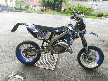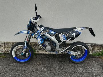 Come da annuncio vendesi TM smr 125 del 2012. Moto sempre tenuta al coperto in garage, scaldata ogni volta prima di partire, miscela sempre fatta correttamente con olio motul 710. A livello estetico, nonostante gli anni, la moto è stata sempre tenuta pulita ed in ordine, pressoché completamente originale da concessionario; a livello di motore e di ciclistica si presenta in buone condizioni. Due anni fa sono state revisionate le sospensioni, è stato rifatto il motore, ad esclusione del cilindro, che però è stato sostituito la scorsa primavera assieme al pistone, rifatto e che attualmente hanno 30 ore totali. Oltre a questo lavoro, sempre la scorsa primavera, sono stati sostituiti il filtro aria, la gomma posteriore (100%, mentre l'anteriore è al 60%), lo statore del generatore (con revisione della centralina), la candela ed è stato eseguito il cambio del liquido dei radiatori; ultimo tagliando olio effettuato 10 ore fa. Sicuramente ho dimenticato altre componenti cambiate o lavori svolti; assieme alla moto cedo il cilindro sostituito (utilizzabile per un eventuale progetto 144), con valvola completa, seminuova, smontata a parte. Il prezzo è leggermente trattabile, previa visione.