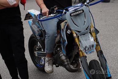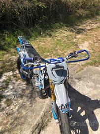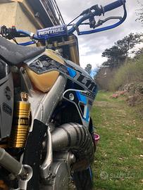 Tm con omologazione sia motard che enduro completamente rifatto dal impianto elettrico al motore alle sospensioni tutto a 22h, restaurata per pura passione e divertimento nel farlo, ho smesso di guidarla a causa di imprevisti ed è stata ferma in box da allora circa 2 anni fa la moto non è come nelle foto e ha bisogno di essere pulita e ripristinata un po' a causa del tempo ferma. Cerchi e gomme enduro e freni vengono ceduti con la moto con anche un po' di plastiche e pezzi di ricambio.
