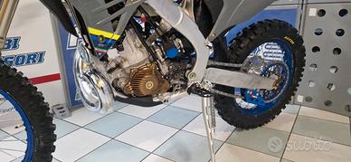 TM MOTO enduro 300 2 TEMPI ES FI - modello CORSE 2026 - motore 2 tempi con miscelatore automatico - alimentazione INIEZIONE corpo farfallato TM MOTO - erogazione POTENTE e LINEARE ben controllabile dal pilota - AVVIAMENTO ELETTRICO (optional a pedale) - cambio a 6 marce - ECU eMoticom - ciclistica al TOP DI GAMMA con telaio in alluminio deltabox monotrave per una notevole precisione di guida - forcella KYB da 48 e monoammortizzatore TM opportunamente modificate per ottenere una guida equilibrata e precisa - molti componenti ricavati dal pieno - impianto frenante BREMBO e NISSIN -