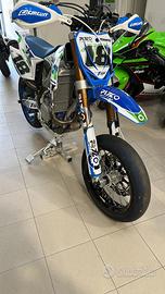Scarichi dvr Antisaltellamento pz5 Testa e cam lavorate tm Cerchi tubless Telaio con canotto cnc Telaietto serbatoio in carbonio Airbox in carbonio Cover airbox maggiorata Mappa dedicata 65cv Forcellone modificato Tm Forcelle Marzocchi 50 con cartuccia ohlins Mono ohlins Leveraggi cnc tm Motore 30 h
