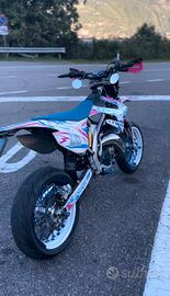 Vendo Tm smr 125 del 2017 per passaggio a macchina. La moto é in ottime condizioni, pronta all uso immediato! Una delle ultime annate a carburatore! La moto ha in totale 80 ore (blocco e pistone) da quando le é stato rifatto tutto il motore. La frizione é stata cambiata a 60 ore e ha 20 ore di utilizzo. La revisione é valida fino al 31/10/2026. La moto monta varie modifiche: - Silenziatore artigianale DCR - Pacco lammelare V-force 4r (al posto della V-force 3 che monta originalmente) - Copricarter frizione in carbonio personalizzato con colorizazzione traslucida blu e foglia d oro di colore viola ed argento - Paracolpi in ergal anodizzato in blu di SM Project - Pedalina freno posteriore anodizzata in blu di SM Project - Pedane in ergal di colore blu - Coperchio brembo pompa frizione e freno anteriore in blu di Sm Project - Grafiche personalizzate di Cecchi graphics design con finitura crome sulle parti grigi - Gomme Bridgestone Battlax S21 al 90% - Pellicola copritelaio in carbonio forgiato di colore viola - Serbatoio in nero (9 Litri) In più cedo: - Serbatoio maggiorato originale - V-face con grafiche in blu originale con luce - Coppia di parasteli in blu - Parafango graficato in blu - Tutti i pezzi originali che sono stati sostituiti dalle modifiche elencate Per informazioni ecc. non esitate a contattarmi