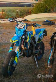 Vendo TM SMR 125 2018 (penultima annata a carburatore)a malincuore per passaggio a nuovo progetto di cilindrata superiore. Motoperfettamente funzionante, sempre tagliandata regolarmente seguendo il manuale e trattata con cura maniacale. Sempre tenuta al chiuso in garage quando inutilizzata. Utilizzati solo oliBardahl KTS Competitionper la miscela eGearboxper il motore. Pistone Vertex alta compressione con86h (è un pistone che regge tranquillamente 160h e passa quindi è a metà vita), sospensioni revisionate80h fa. Contaore a 120h per mancato reset. Sempre scaldata correttamente, tenuta maniacalmente. Dispongo dipezzi originali (copri serbatoio bianco originale, specchietti, scarico completo, manubrio e molto altro), ricambi e prodotti per la manutenzioni (oli vari, candele, 3 filtri aria, ecc.) e varie modifiche estetiche e non. Tutti i lavori eseguiti pressoofficina ufficiale TM Racing di Piombino, dimostrabili con fattura. Moto contripla omologazione, guidabile con patente A1,7.5 cv a libretto (reali 37.6 cv reali alla ruota bancati). Lavorazioni e Powerparts: - pancia hgs - terminale pro circuit r304 shorty - pacco lamellare V-Force 3 con lamelle nuove - squish rivisto - pistone vertex alte prestazioni - candela irridium - pastiglie anteriori nuove con meno di 200km - kit grafiche completo by Cecchi Grafic Design - catena blu - corona Sitta in ergal blu - manubrio personalizzato in ergal blu - tappo serbatoio in ergal blu - paracolpi Neken Carbon look - Leve freno e frizione in erga blu di Alba Motor Parts - tubi radiatori in silicone blu - porta targa pieghevole blu custom Gt Lab con scritta "gratta e vinci" - copri serbatoio/presa aria in carbonio CMT Compositi - angel eye blu - recupero fluidi custom - specchietto a manubrio omologato - frecce nano led -Contiattack Sm 2 con pochi km Prezzo poco trattabile ma posso prendere io in carico il passaggio di proprietà Per qualsiasi domanda o informazione rimango più che disponibile