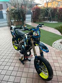 Vendo bellissimo tm smr 125 del 2019 per passaggio a cilindrata superiore, moto tenuta maniacalmente. -motore completo con 25 ore al attivo (tutti i componenti cambiati li ho) -Gomme nuove -Manubrio accossato -varie parti in ergal -carter frizione trasparente con viti blu -Cover serbatoio in carbonio by CMT -Kit grafiche personalizzato holo+glitter -Cerchi bicolor (sotto le pellicole sono azzurri originali tm) -Vface con Faro RGB -frecce microled -Pancia scalvini e terminale pro-circuit -Porta targa regolabile -vari pezzi in 3D con logo tm bianco con la moto cedo tutti i pezzi per portarla completamente allo stato originale. prezzo trattabile, per qualsiasi informazione non esitate a contattarmi.