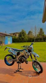 Vendo TM 125 FI anno 2021 tenuta in condizioni maniacali,unico proprietario, sempre curata nei minimi dettagli e mai utilizzata in pista.La moto è omologata Biposto con le apposite pedane per il passeggero e ha di serie il cambio elettronico in salita. Motore e manutenzione * 15 ore di utilizzo su blocco motore completamente rifatto: * Biella * Pistone * Cuscinetti * 3 ore di utilizzo sulla pompa del miscelatore * Manutenzione documentata con fatture disponibili per la visione * 10000 km totali Moto sempre utilizzata con attenzione e mantenuta in perfetta efficienza. La moto è allestita con numerose modifiche estetiche e di prestazioni: * Copriserbatoio in carbonio CMT * Copri carter in carbonio KVC * Copri forcelle in carbonio * Leva freno in ergal albamotorparts * manubrio piega alta in ergal personalizzato NRC components * Pedane maggiorate in ergal albamotorparts * Copri tappo pompa frizione in ergal SMProject * Faro LED Angel Eye * Kit tamponi anteriori e posteriori SMProject * Porta targa pieghevole GTLab * Micro frecce * Espansione DBR * Silenziatore DBR in carbonio e fondello alluminio blu (lana di vetro appena cambiata) * Grafiche 100% personalizzate * Coprisella WDRacing personalizzata * Specchi omologati bassi * Adesivi cerchi bicolor * Copriserbatoio completo 3D * plastiche complete bianche * Slider pedane personalizzati in 3d * Set di viti in ergal * mono revisionato da poco Insieme alla moto cedo tutti i pezzi originali. Prezzo * 7.400€ → moto completamente originale * 8.500€ → moto accessoriata come da foto