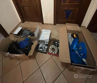 Sono inclusi tutti i pezzi originali (scarico completo cromato, manubrio, coprisella ecc...) più un kit di plastiche nere completo (faro e piatta) più parafango anteriore, parasteli e piatta blu