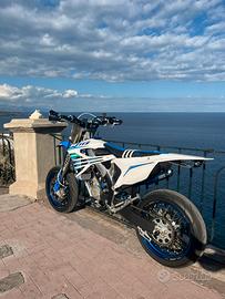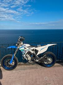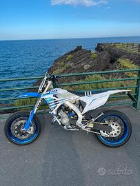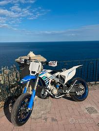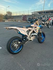 vendo a malincuore tm smr 125 fi 2022. La moto è stata tenuta sempre maniacalmente sia per quanto riguarda la pulizia, la messa a punto, e la manutenzione fatta ogni 15 ore con olio motorex (come consigliato da casa madre) . Sempre conservata in garage ed utilazzata per uscite domenicali. La moto ha 190 ore totali, il pistone è stato cambiato ogni 80/90 ore. La moto 25 ore fa é stata portata in officina ufficiale tm e sono stati effettuati i seguenti lavori: pistone, tagliando, mappa aggiornata, pulizia valvola di scarico, cambio dischi frizione, copertoni nuovi. Inoltre il sono stati cambiati i cuscinetti di banco circa 65 ore fa per manutenzione generale. La moto monta svariate modifiche sia estetiche che funzionali: