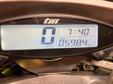 Vendo per inutilizzo Tm SMR 125 Fi 2023 omologato biposto tenuto in modo maniacale sempre in garage con 5984 km, pistone già fatto presso officina autorizzata Tm Racing, olio del cambio sostituito ogni 35 ore. Unica modifica presente silenziatore HGS anodizzato blu. Moto in perfette condizioni mai caduta nemmeno da ferma. No scambi no perditempo.