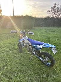 Vendo a malincuore spettacolare TM SMR 125 Fi, versione motard super curata nei minimi dettagli, potentissima e pronta da usare. Moto tenuta maniacalmente, come si vede in foto. La moto attualmente ha 103 ore ed è sempre stata tagliandata da un officina ufficiale TM (dispongo anche delle fatture) in più la moto è sempre in garanzia ufficiale TM. Come si può vedere dalle foto, la moto è composta da diverse parti estetiche come: kit grafiche full holo + glitter tamponi, tappo olio freno e tappo della benzina in ergal, paracolpi renthal, porta targa pieghevole con mini frecce led e sella blu. in più cedo anche tutti i pezzi originali. Vendo per passaggio a cilindrata superiore. La moto è perfetta meccanicamente ed esteticamente Utilizzata solo per uscite amatoriali, mai pista o gare e tenuta sempre al coperto. Per maggiori informazioni o foto/video in più scrivermi.