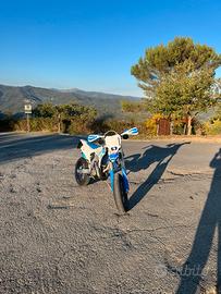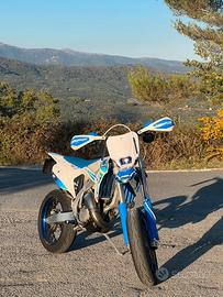 Vendo Tm 125 con 17 ore di blocco e 225 di telaio le pastiglie sono state cambiate da poco , il mono è stato revisionato da 20 ore , la moto monta pancia hgs, pedane e le anodizzate blu albamotorparts, piatta con le luci nuova appena messa come lo scarico è stata appena sostituita la pompa del miscelatore e gli iniettori ,per informazioni contattate ,il prezzo trattabile