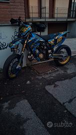 Vendo a malincuore, per passaggio a cilindrata superiore Tm Smr 125. La moto è stata acquista il 05/2024 e sono stati eseguiti i seguenti lavori: •Completo rifacimento del blocco motore Presso Loreno Race (dimostrabile con i pezzi sostituiti) •Completo rifacimento di impianto elettrico con aggiunta di batteria (COMPLETAMENTE FUNZIONANTE). •Revisione completa di forcelle e sostituzione cuscinetti ruota anteriore •Revisione completa di pompe frizione e Freno • A 5000km Seconda apertura del blocco motore presso Paso's Garage per Revisione motore e carburatore, cambio pistone, cuscinetti di banco, guarnizioni e paraoli e ricromatura e rettifica cilindro (Sez.A) (54.00mm). La moto in questi anni è stata utilizzata principalmente per giri domenicali e per il tragitto casa-scuola, tenuta sempre in box, MAI uso pista, tagliandi regolari ogni 15/20 ore (c.a. ogni 700/1000km), sempre scaldata prima di ogni utilizzo e sempre effettuata miscela al 2%/2.5% con Motul 800. Revisione valida fino a 07/2027 e bollo pagato fino a 01/2027. La moto monta a livello di motore: - Espansione Hgs cromata -Terminale Dbr in alluminio - Keihin Pwk 38mm (appena revisionato) (con getti 35-158) -Pistone Wössner bifascia grafitato alleggerito con 1500 km -Biella originale Tm sostituita al rifacimento del blocco -Filtro in spugna Twin Air -Rapporti 13-45 Ciclistica: -Cerchi Excel 17' omologati -Forcelle Öhlins 48mm -Mono Öhlins -Disco 320mm -Pompa freno 16x18 Radiale -Pastiglie Carboceramiche -Gomme Metzler Sportec M9RR con 700 km (150/60/17 ant. 120/70/17 post.) Estetica: -Grafiche personalizzate by Next graphics design -Coprisella Sm project -Portatarga Dev and Craft -Catena DID passo 520 -Recupero fluidi Personalizzato -Paramani e manopole Circuit -Polisport E-blaze -Specchietti bassi omologati -Leve freno e frizione in ergal (Septar e Accossato) Per ulteriori informazioni lascio recapito telefonico 3498193369.