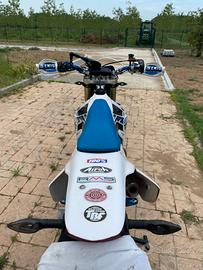 Motore con 22h , sono stati sostituiti i dischi della frizione, tutti i cuscinetti di banco la biella e il pistone, (fornisco i pezzi precedenti come dimostrazione del lavoro effettuato), sono state sostituite le grafiche di recente, la catena (regina cross) e anche le pastiglie del freno anteriori, monta espansione scalvini motard e terminale FMF shorty introvabile per tm.