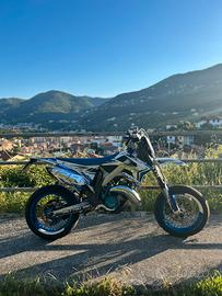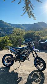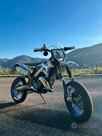 Vendo Tm smr del 2019 (ultima annata a carburatore) per passaggio a cilindrata superiore. la moto ha 37 ore di pistone e il cambio olio è sempre stato eseguito ogni 15 ore, tenuta maniacalmente e sempre al chiuso. Dispone di diverse modifiche come: -Grafiche cromo Martingraphics design -Piatta TM con faro e frecce -Manubrio albamotorparts blu in ergal -Leva frizione Septar in ergal -Para carter frizione RP racing in ergal -Copri telaio in carbonio -Parapignone Soat3D -Pedane in ergal blu -Parapinza e paradisco in ergal blu -Corona in ergal -Porta targa pieghevole -Silenziatore HGS blu -Specchietti sotto al manubrio omologati -Leva cambio NRteam -Paramani Circuit E tantissime altre modifiche e power parts che non sto ad elencare... I rapporti sono stati accorciati per una maggiore ripresa, cedo anche la v-face graficata con angel eye (Visibile nell'ultima foto) Scrivetemi per qualunque informazione se siete veramente interessati. Prezzo trattabile solo dopo la visione.
