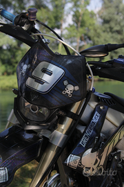 Monta diversi componenti in ergal blu (anche leve freno e frizione)