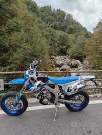 Tm smr 450 anno 2020, depotenziato a libretto 11kW guidabile con A2, con svariate modifiche (ben oltre 4000 euro solo di pezzi): Motore con 83.5 ore (come da foto quadro), olio motul 300v² 10w50 e filtro ogni 10 h (anziché 15 h), mai pista, tenuta sempre in garage. Mai usata con la pioggia - Scarico smx e relativa mappa ufficiale - Corpo farfallato maggiorato smx - Frizione antisaltellamento Adler - Cover airbox in carbonio custom per migliore airflow - Cambio elettronico - Telaietto smx per doppio scarico - Recupero vapori olio esterno derivazione smx, invece che in airbox (così non aspira olio e ha una risposta dell'acceleratore più pronta) - Grafiche personalizzate in glitter e crystal - Anelli para scarico blu Fornisco anche tutti i pezzi originali, doppie chiavi (sia d'accensione sia del bloccasterzo), qualche filtro olio, olio per un cambio olio ulteriore, cavalletto centrale e caricabatterie con mantenimento carica collegabile senza smontare le plastiche e la sella Se interessati, la moto può essere consegnata in tutta Italia Revisione ok fino maggio 2026 La moto è in perfette condizioni, come da foto, mai caduta, tenuta in maniera maniacale. Il motore non necessita di manutenzione straordinaria (tm da manuale consiglia il pistone a 135 ore, la moto non ha nessun calo di potenza o vuoto vista la manutenzione assidua e la cura nello scaldarla prima di usarla), ho alcuni video di come gira. Rispetto al tm smr 530 gira più alto. Vendo esclusivamente per passaggio a moto di cilindrata superiore. Se veramente interessati sono disponibile a fornire qualsiasi info ulteriore tag : ktm sxf, ktm smr , tm fi , husqvarna tc , yzf , kxf , 125 , 250 , 450 , 530 , 690 , 701