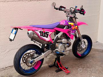 Come da titolo vendo Tm smr 530 pink edition: - scarico originale HGS (omologato) - frizione antisaltellamento STM - cambio elettronico, 6 marce - ventola raffreddamento radiatore - pompa raffreddamento maggiorata - carter ricavati dal pieno - protezione telaio in carbonio - portatarga pieghevole - frecce led Paraxite - specchietti CNC omologati Barracuda Cambio olio e filtro eseguito ogni 8 ore, revisione effettuata ad ottobre 2025