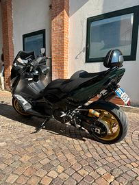 Vendo per passaggio a moto stradale tmax 530 ironmax del 2015 con 27 mila km circa. Lo scooter é sempre stato trattato con cura da vero amatore, neanche 1000km fa é stato eseguito un tagliando con sostituzione dell olio e tutti i filtri e sostituzione della batteria. É stato riverniciato in questo splendido verde audi dal vecchio proprietario, in accoppiata ai cerchi color oro. Lo scooter ha diverse migliorie come dischi a margherita davanti e dietro, mono ammortizzatore ohlins, scarico completo leovince in titanio, antifurto e altre cose. Per favore evitate di farmi perdere tempo, si accetta solo gente con soldi in tasca. Prezzo 7800 euro trattabili dopo visione