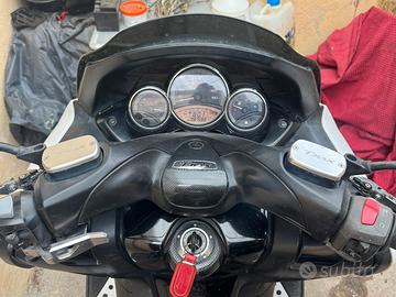 Tmax 500 anno 2009 revisione fatta,lavori che sono stati fatti:variatore malossi,frizione malossi,rulli,cambio di tutti i filtri cambio olio motore e cambio olio trasmissione,ruote nuove Pirelli rosso,marmitta del 530 ,leve marcate Tmax personalizzate,batteria nuova e regolatore batteria nuovo,e antifurto il veicolo possiede anche tutte e tre le chiavi anche la rossa, i kilometri sono originali