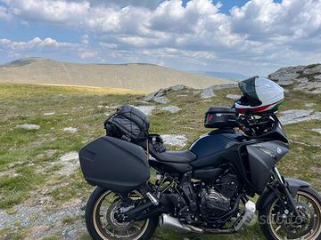 La moto viene venduta con borse laterali rigide originali Yamaha piastra con bauletto givi da 48 litri e borda serbatoio totalmente waterproof della swmotec.