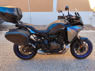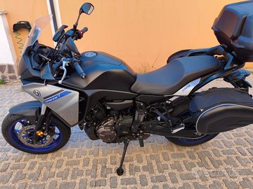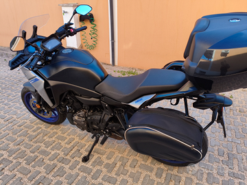 Splendida Tracer 7, bauletto posteriore 50lt originale Yamaha, telaietti e borse laterali morbide aftermarket. Ideale per la città e ottima per viaggiare