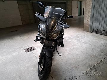 la moto è equipaggiata con cupolino turing yamaha, manopole riscaldate yamaha, fari aggiuntivi con pulsante, para motore con tamponi yamaha, pompa freno radiale, tubi freno treccia( tutti anche nell'abs) porta targa posteriore, frecce yamaha, bauletto yamaha con staffa, forcella anteriore revisionata 5000km fa con modifiche, scarico ixill omologato, ammortizzatore posteriore wilbers con regolazione idraulica carico, gomme michelin road6 75%. assieme cedo cavalletti e tutti accessori