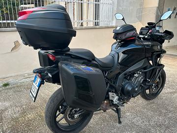 La moto è dotata di quick shifter bidirezionale, protezioni motore laterali, borsa tank lock e tris valigie originali Yamaha.