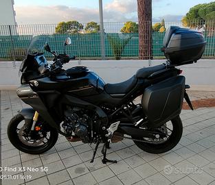 Come da titolo vendo Yamaha Tracer 9 GT colore nero. Anno di immatricolazione 03/2025, chilometri percorsi 6500, colore nero priva di graffi o ammaccature, praticamente immacolata. La moto monta di serie quanto segue: Faro a LED Matrix con regolazione dinamica della luminosità, luci adattive e cornering,Parabrezza regolabile elettricamente,Cruscotto TFT da 7" con tre temi grafici, Connettività allo smartphone tramite app My Ride e funzione di navigazione Garmin gratuita,Presa USB,Manopole riscaldate, Sistema Smart Key, Cruise control,Cambio Quick shift,Acceleratore ride by wire,3 Riding mode preimpostati (Sport, Street, Rain) e 2 Custom personalizzabili,Controllo di trazione, di slittamento, di impennata, del freno e ABS, Sospensioni elettroniche,Borse rigide da 30 litri rimovibili con chiusura elettrica e centralizzata. Unitamente alla moto cedo i seguenti accessori dal valore di 1400 euro: piastra e portapacchi posteriore da 50 litri originale Yamaha; griglia radiatore originale Yamaha; para motore nero Sw motech; para telaio sw motech; Easy block. Non accetto permute.