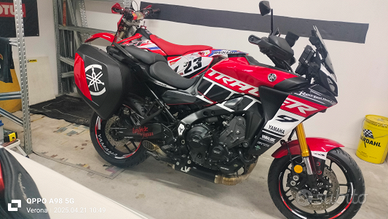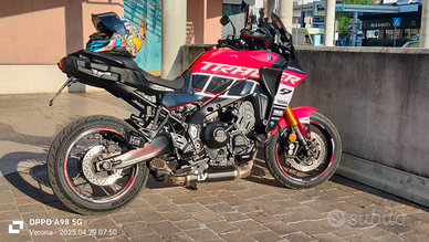 Vendo splendida tracer 9 GT anno 2022 con attualmente 23.000 km in uso. Moto accessoriata in ogni sua parte tenuta in maniera impeccabile tagliandata e controllata sempre in concessionaria Yamaha tacconi moto di Verona. Non sto ad elencare tutti gli accessori che monta Ma è praticamente completa di tutto... la chicca è la grafica dedicata è lo scarico completo Leo vince omologato accompagnato da un filtro aria sportivo sprint filter p08 e mappatura a banco dedicata by miazzon moto di Marostica. Insieme alla moto cedo borsa serbatoio givi rigida le sue due valigie laterali più carpuride 502 usato una volta, una serie di pastiglie Brembo nuove anteriori e posteriori più tutti i pezzi originali tranne lo scarico. Prezzo non trattabile passaggio a carico dell'acquirente e per cortesia evitare commercianti sognatori e domande senza senso non risponderò.